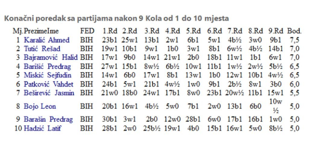 Na tradicionalnom “Bajramskom turniru u šahu” čiji je organizator i domaćin bio Šahovski klub “Kaćuni” iz Kaćuna, član KPS “Baton” sto-postotni ratni vojni invalid, Ahmed Karalić, osvojio je ubjedljivo prvo mjesto.