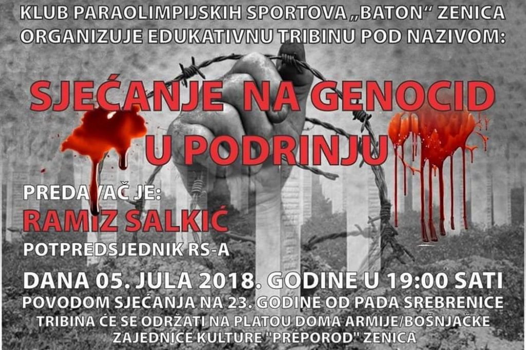 Predavač tribine Ramiz Salkić se zahvalio Klubu paraolimpijskih sportova “Baton” na pozivu, te naglasio da je Srebrenica planetarno pitanje.