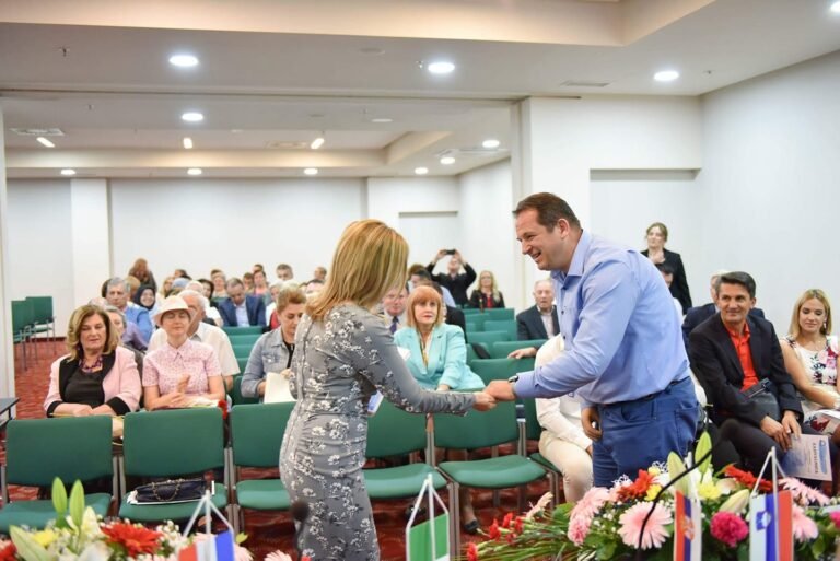 JUBILEJ 10 GODINA ONKLOLOGIJE U ZENICI, ZAHVALNICA UDRUŽENJU KPS “BATON” ZENICA ZA PODRŠKU U RADU. Dr. Libero Ciuffreda, Dr. Livia Giordano, Hazim Tutnjić, dr. Alma Mekić Abazović i dr. Ibrahim Šišić.