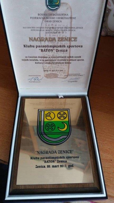 Nagrada dodijeljena Klubu paraolimpijskih sportova Baton obrazložena je izuzenim doprinosom ovog udruženja u resocijalizaciji ratnih vojnih invalida i postignute sportske, kulturne i rezultatima postignutim na edukaciji.