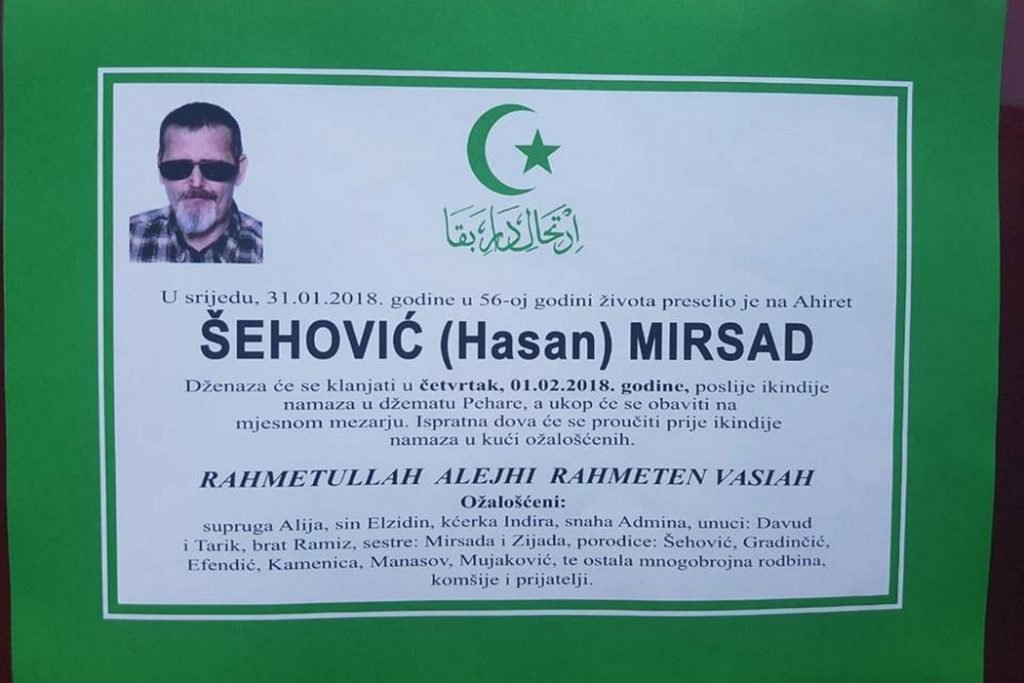 Dok je ezan sa minareta u Peharama sljedbenike islama pozivao na sabah, jutros je našem Batoncu, teškom RVI, Mirsadu Šehiću-Šehi značio poziv na ahiret. Mirsad Šehović-Šeha je nakon duge i teške bolesti, preselio na ahiret. Na onaj ljepši, pravedniji, i iskreniji svijet, od ovog kojim hodimo do volje Uzvišenog. Svijet, u kojem ne vlada pohlepa i razvrat kao mjera prestiža ovoga svijeta. Svijet u kojem se kap prolivene krvi gazije, prolivene za svoju domovinu, vrednuje više nego svo bogatstvo ovoga svijeta. Dragi naš Šeha, ostat će uspomena na insana kakav si bio, kakav se treba biti. Bio si primjer čovjeka, bogobjaznog i istrajnog. I ti i tvoja zlatna porodica! Ti ćeš hvala Allahu živjeti u sjećanju tvojih „Batonaca“ ali i u napisanoj priči o tebi, koja će se ako Bog da još zadugo čitati. Molimo Uzvišenog Gospodara da ti otvori najljepša vrata ahireta. Džennet!